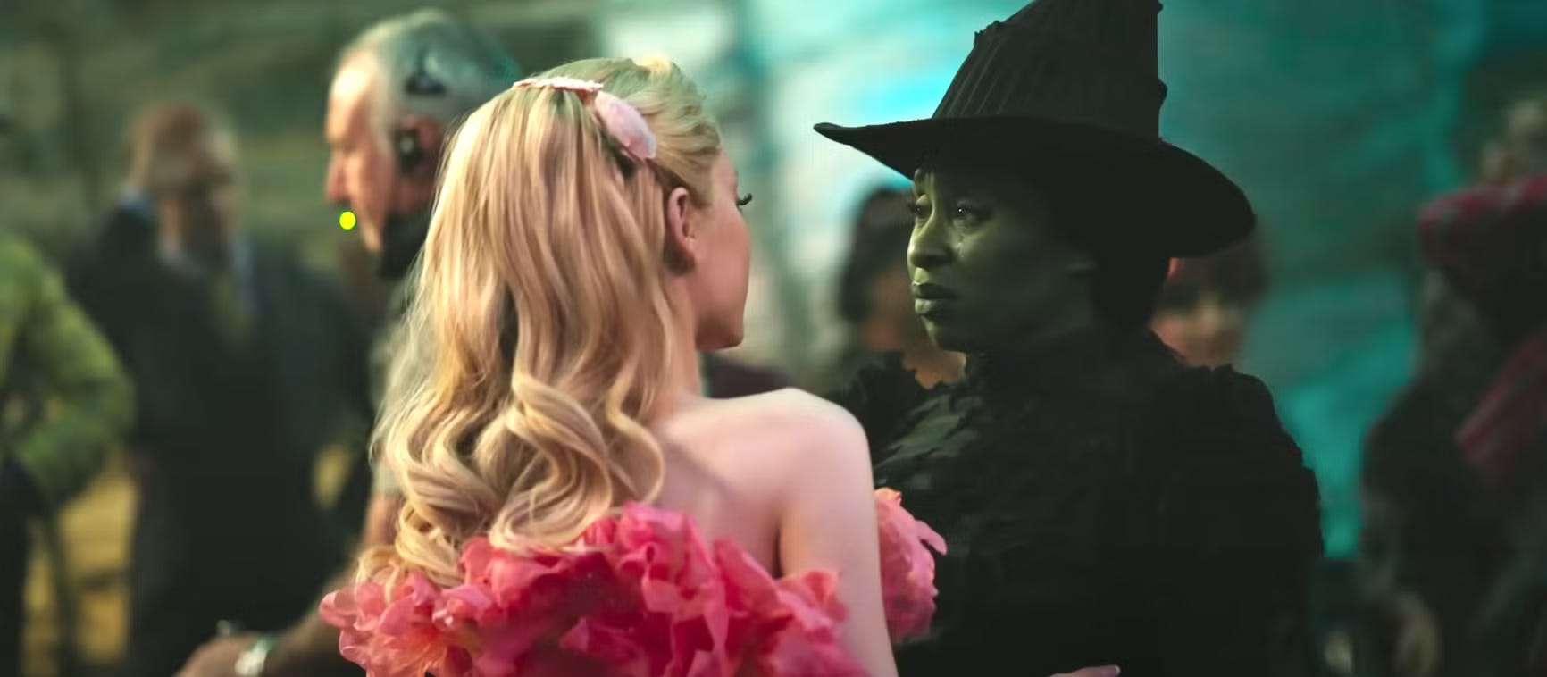 In some ways, Wicked is very visually interesting. Paul Tazewell’s costume design is new and innovative, with a particular highlight being Glinda’s pink and orange petal dress in the Ozdust ballroom sequence of ‘Dancing Through Life’.